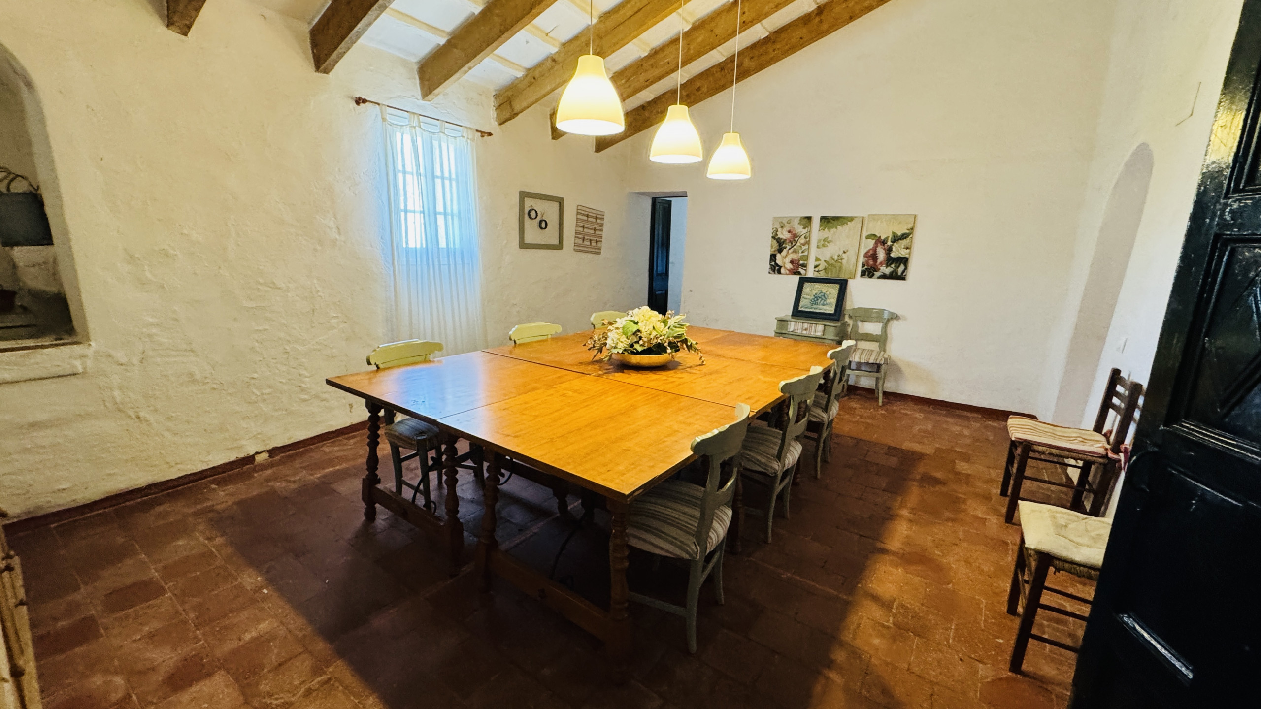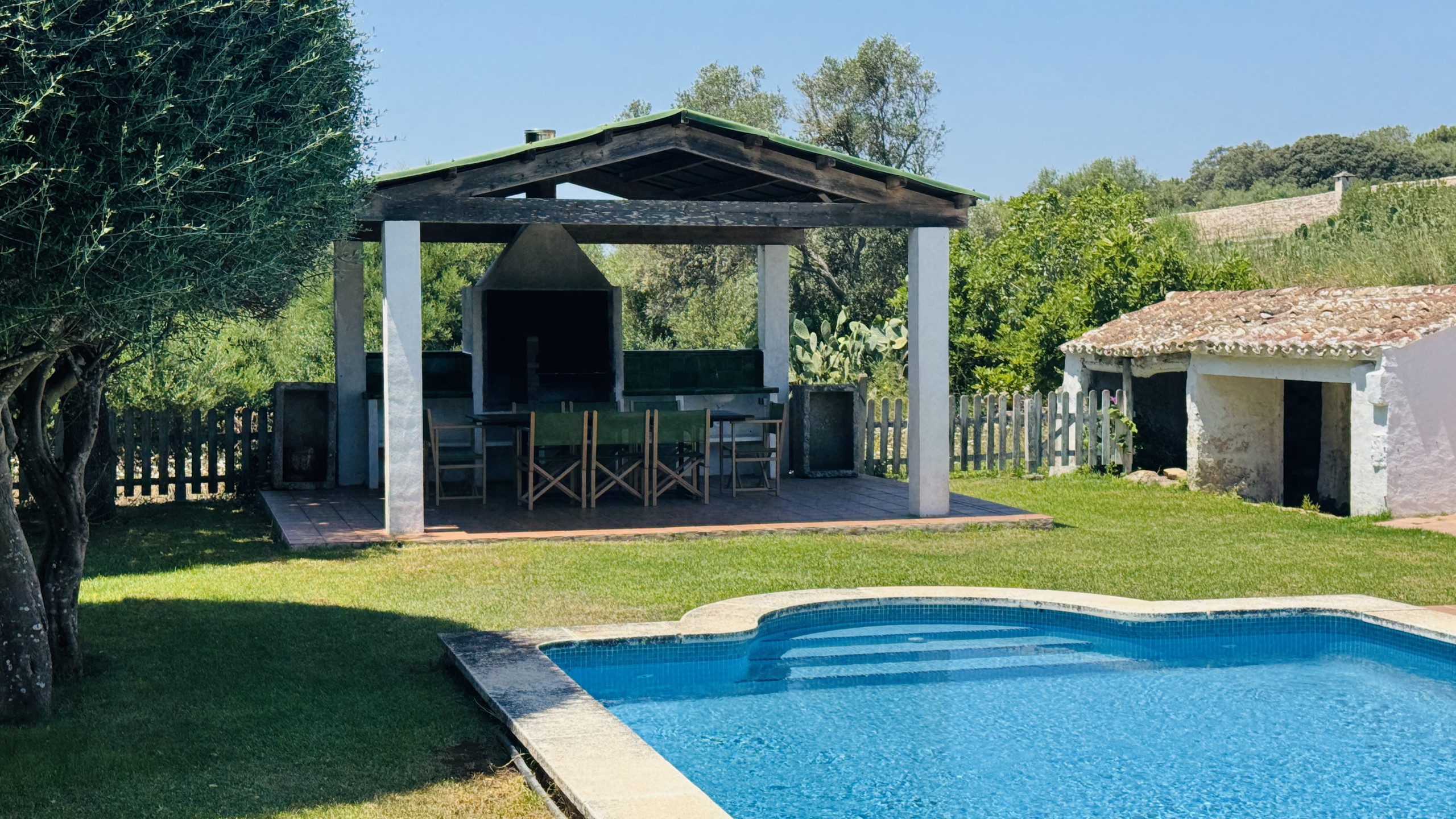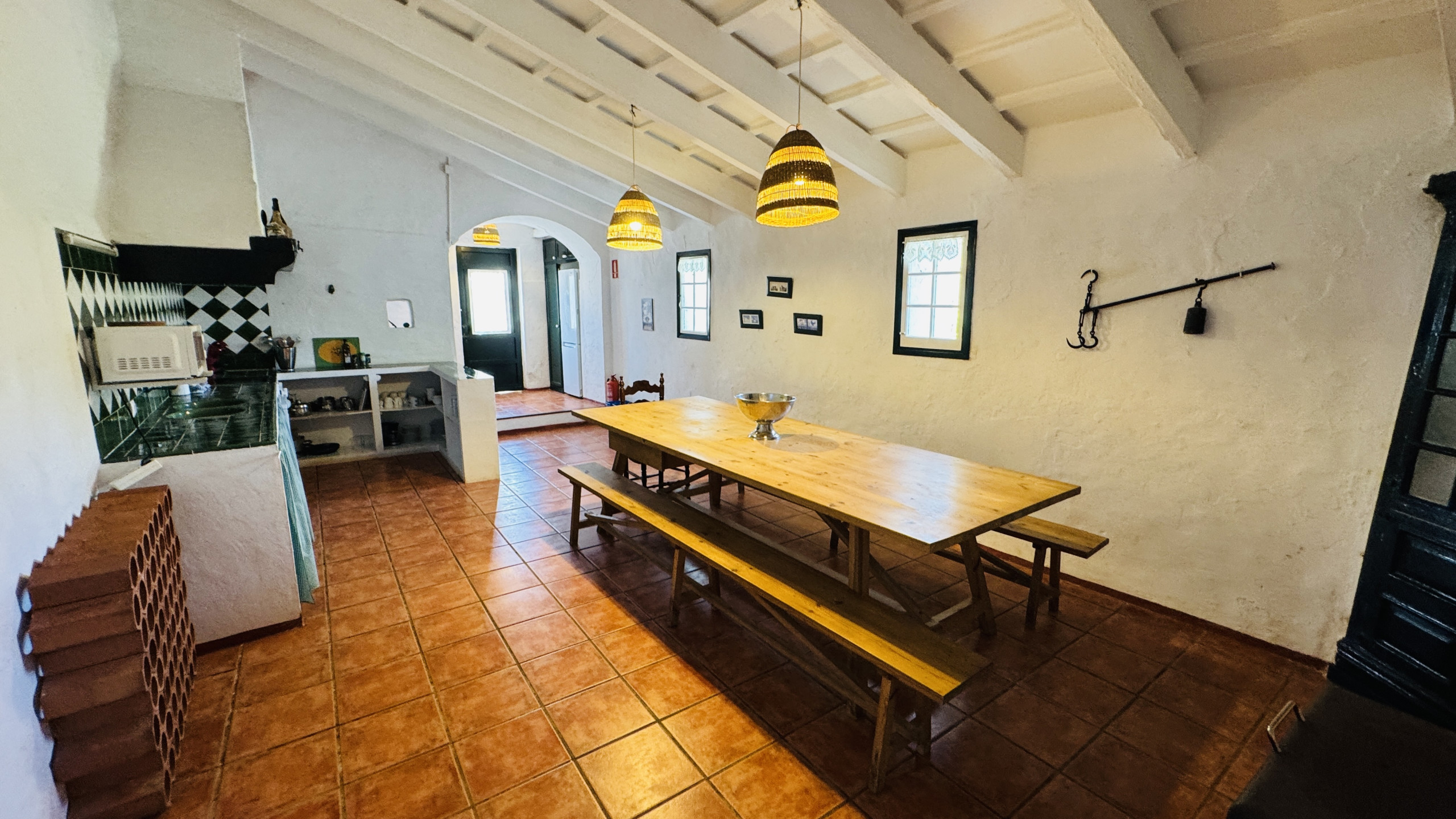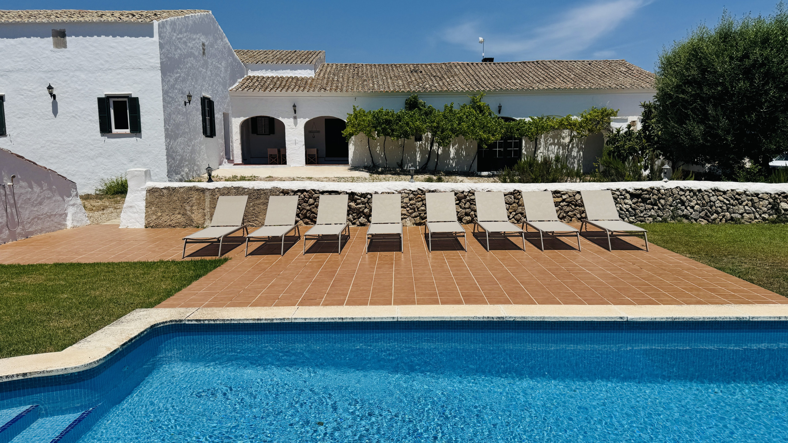 Las casas de la finca han sido renovadas manteniendo las características típicas (suelos tipo "barro", vigas vistas, paredes antiguas, etc.) e incorporando las comodidades necesarias para la vida moderna. Se accede a la casa desde la carretera por un camino de tierra de un 200m perfectamente transitable. La ubicación de las mismas en lo alto de una colina permite disfrutar de unas excelentes vistas del campo menorquín y bosques de pinos. La propiedad cuenta con una piscina (9m x 4m y escaleras romanas) rodeada de una zona vallada con césped donde pueden jugar los niños. También hay una pérgola con barbacoa de obra, mesa y sillas para comer a la sombra. El silencio, privacidad y tranquilidad de esta propiedad están garantizados ya que no existen vecinos.