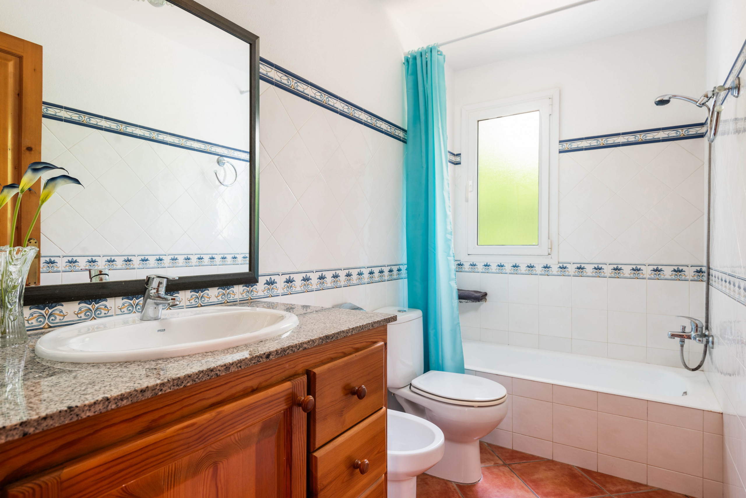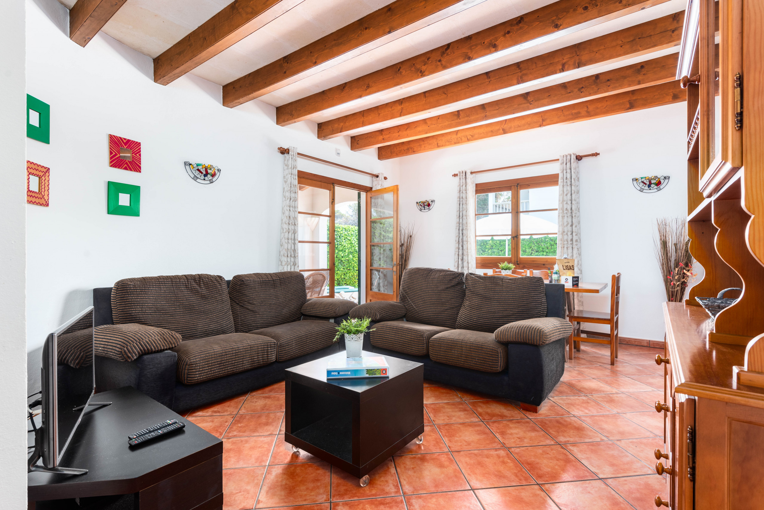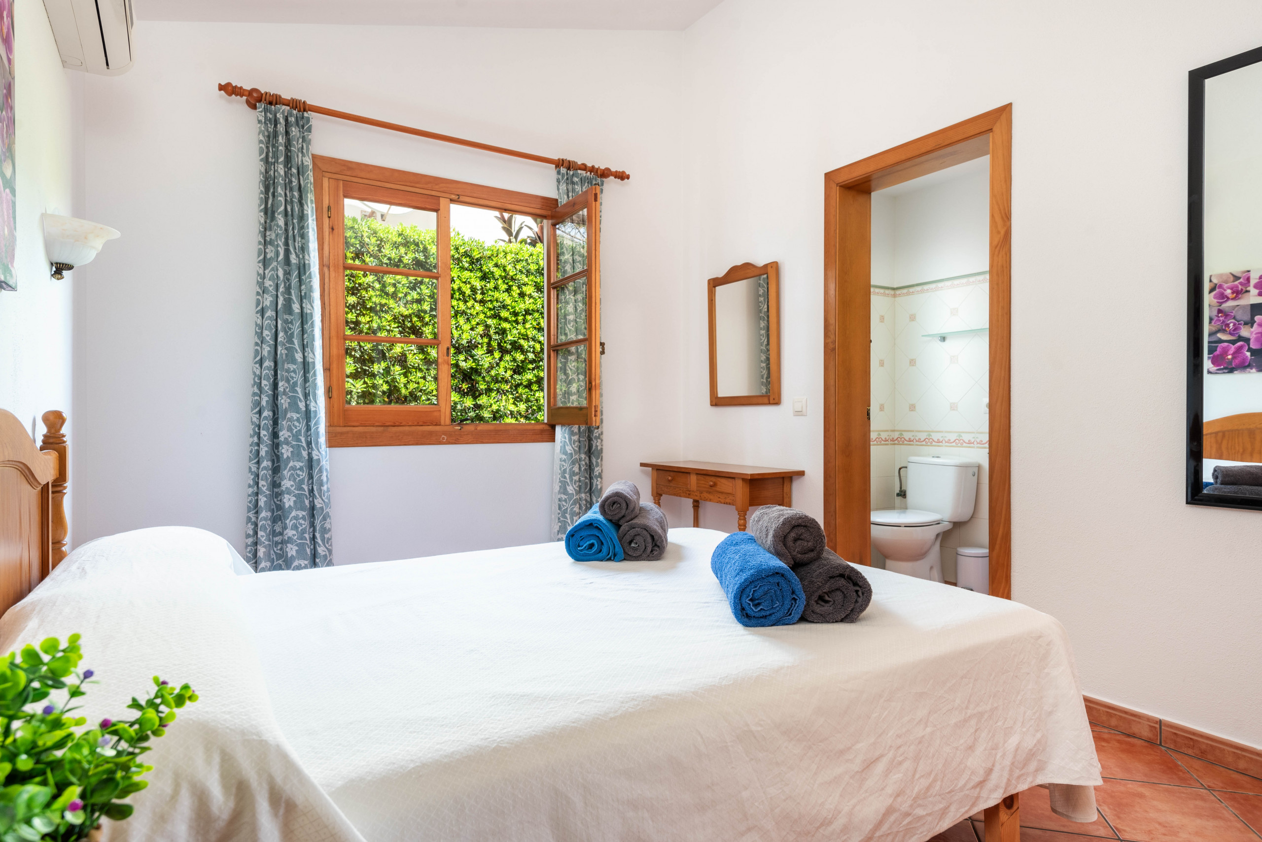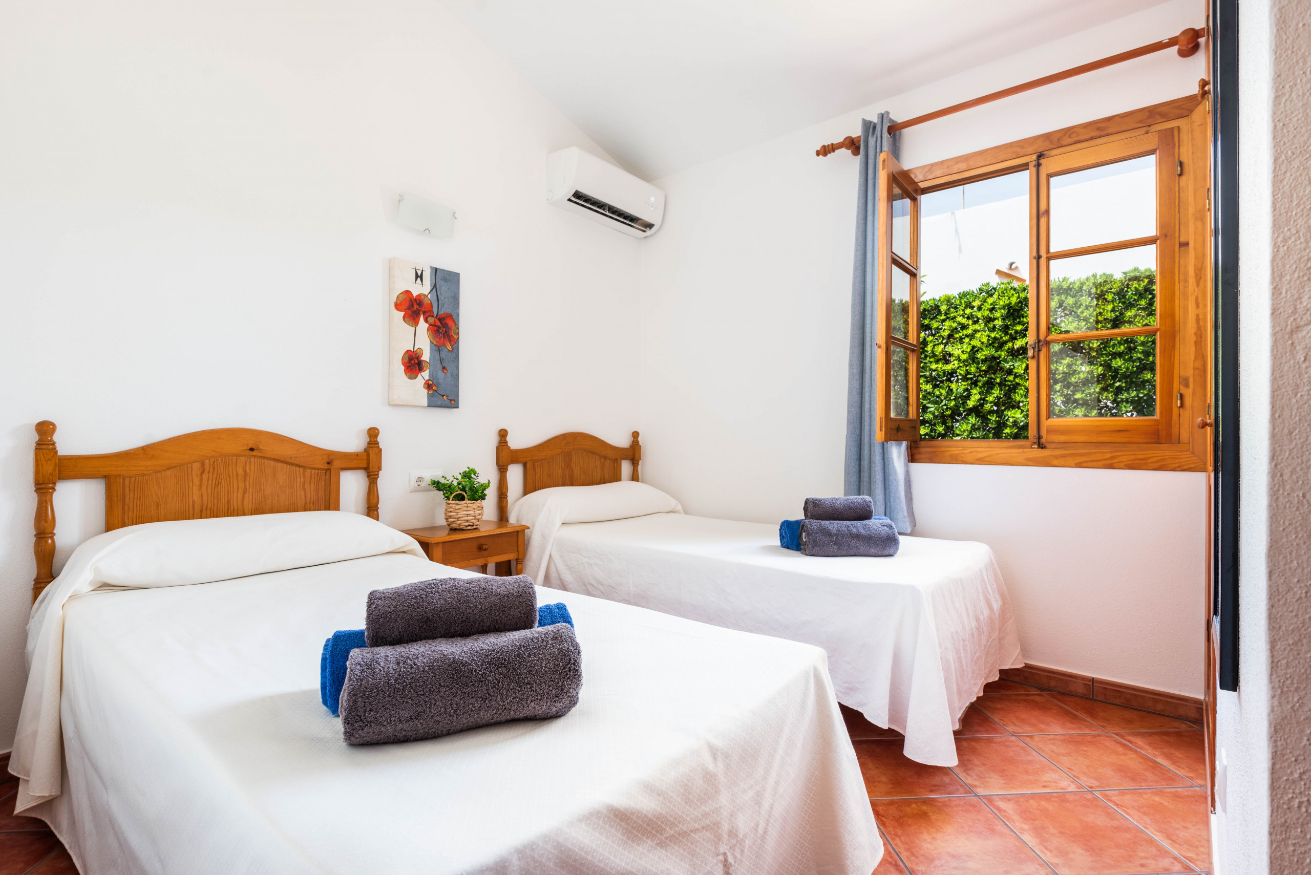 Binisaret... Perfecta para unas vacaciones en familia, ubicada en un gran solar de muchos metros, rodeada de jardín y naturaleza autóctona, para sentirse como en el campo, pero a solo 100 metros de la playa de Arena de Cala Blanca. Tiene una gran piscina de agua salada, y zona exterior muy amplia. La terraza, dispone de mobiliario , para estar cómodamente allí, y en la zona trasera, una preciosa barbacoa de obra, dónde disfrutar de comidas y cenas. Gran salón comedor con Aire Acondicionado, que da acceso a sus 4 dormitorios Capacidad para 7 ocupantes, distribuidos en: Habitación matrimonio, Habitación 2 camas, otra Habitación 2 camas y 1 Hab individual. Una de las habitaciones de 2 camas, se accede a través de la habitación de matrimonio.