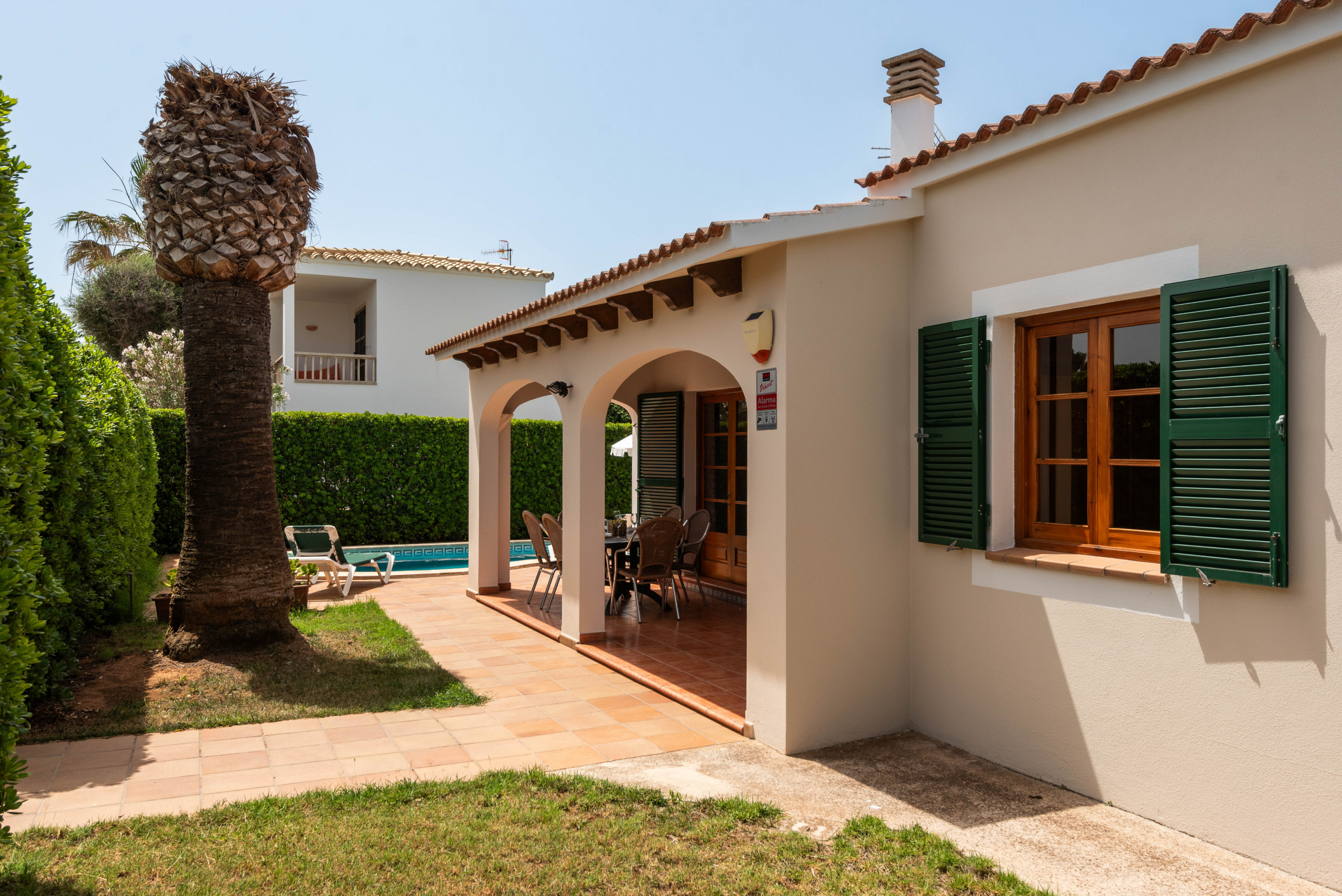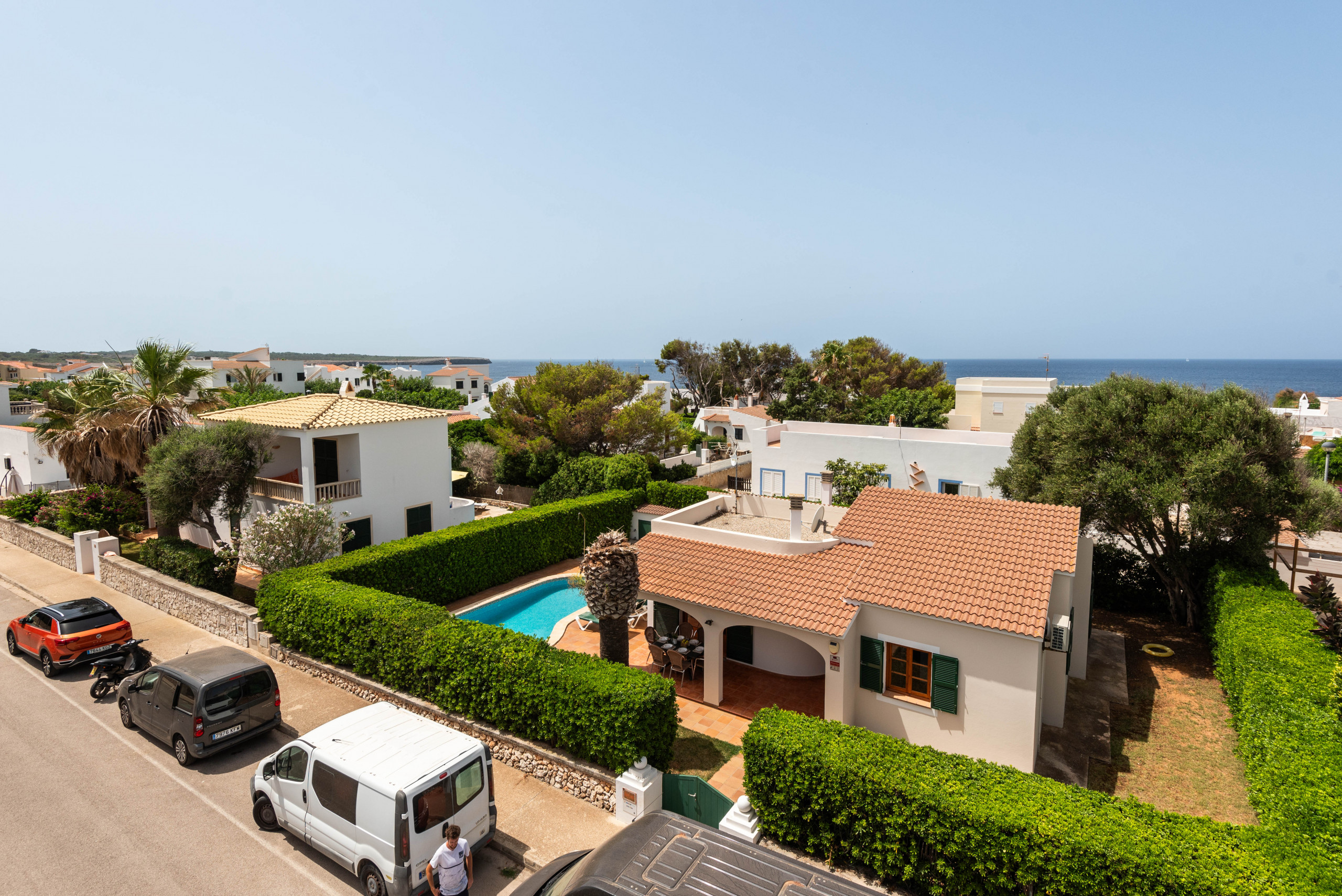 Preciosa y perfecta Villa para pasar sus vacaciones en CALA BLANCA, Menorca. Toda en planta baja, con 3 dormitorios dobles con Aire Acondicionado todas , 2 baños (uno en suite), salón comedor completo con TV Satélite, Wifi, cocina totalmente equipada. Perfecta para pasar los días en el exterior, gracias a su bonita piscina con escaleras interiores romanas, barbacoa de obra al lado de la piscina donde tenemos mesa y sillas para las comidas o cenas, zona de cesped, etc.... No lo duden, pasarán sus mejores vacaciones en Villa Cleo!