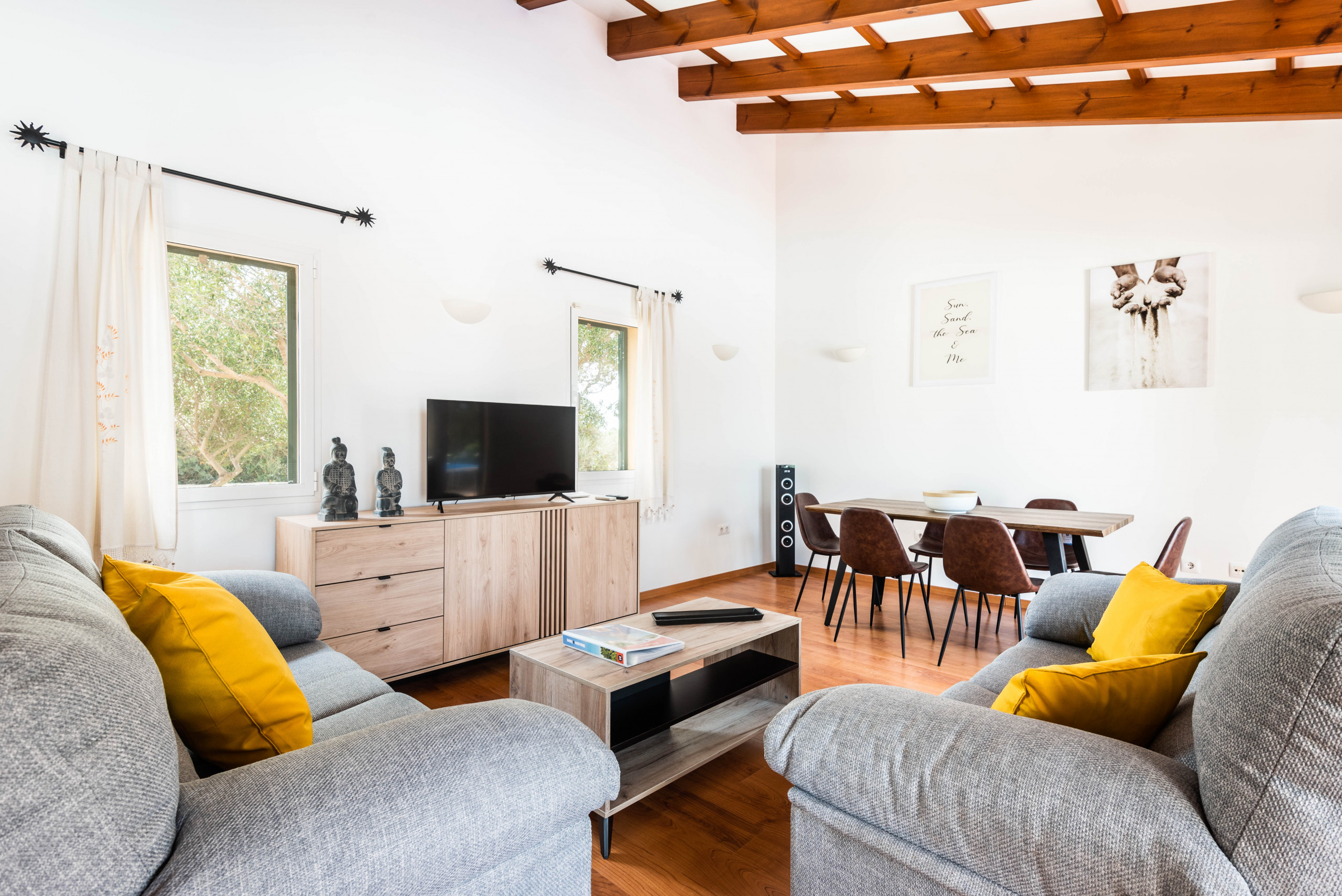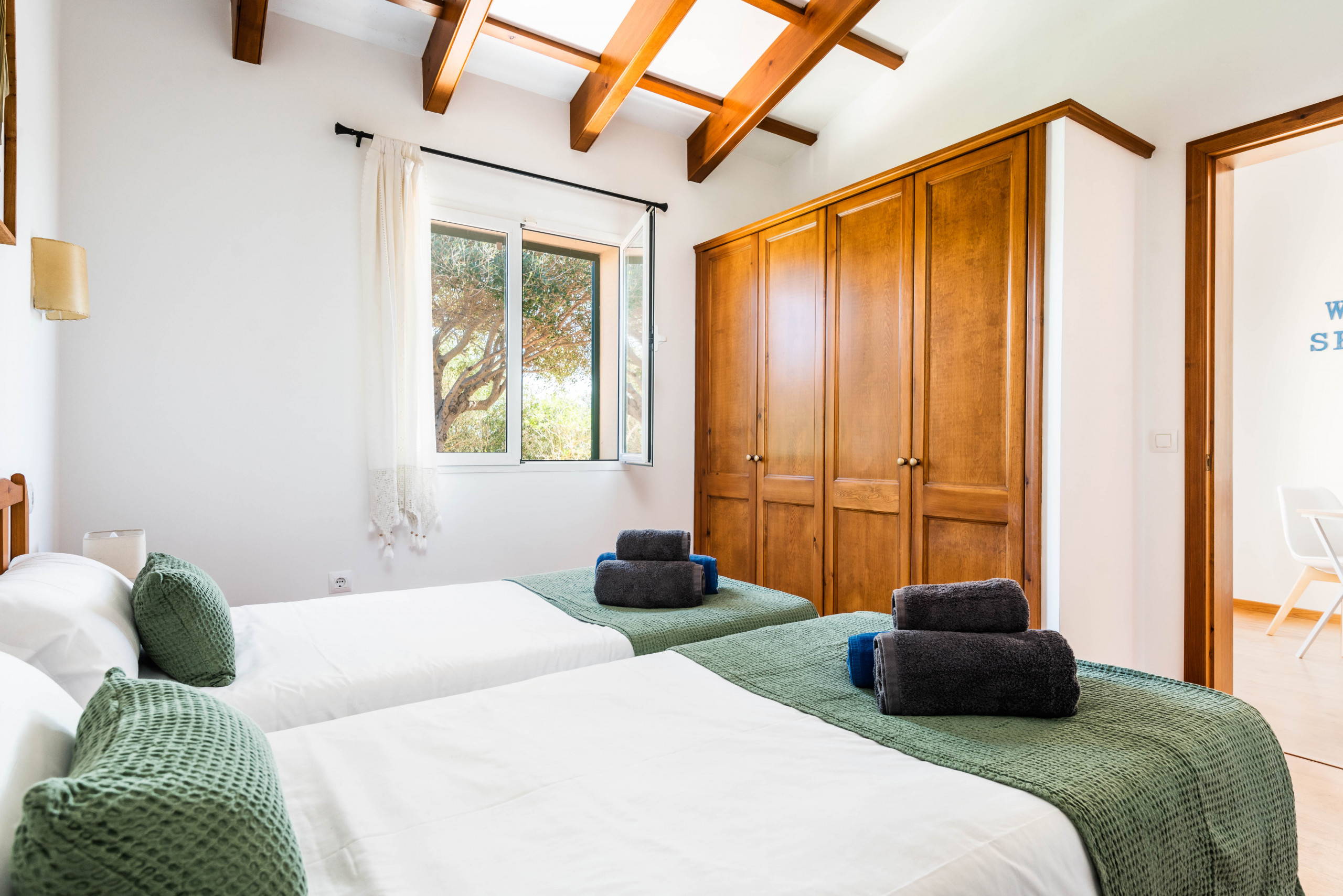Descansa profundamente en nuestros nuevos colchones y despierta rodeado de luz y la calma de Menorca. El jardín, lleno de colores y aromas locales, te invita a disfrutar desde la terraza, ya sea relajándote bajo el sol, compartiendo una barbacoa o dándote un chapuzón en la piscina privada.