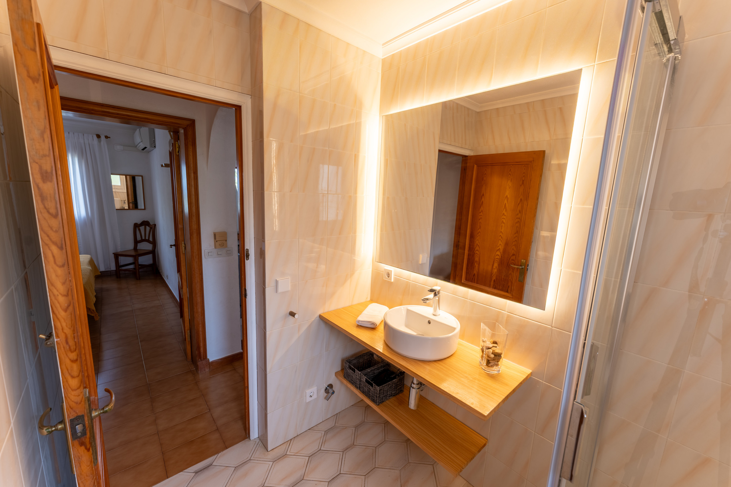 El interior de la villa está totalmente climatizado con aire acondicionado y ofrece 4 dormitorios con 6 camas (2 dobles y 4 individuales), lo que permite una distribución flexible para diferentes tipos de grupos. Cuenta con 3 baños, 2 con ducha y 1 con bañera, facilitando la convivencia de los huéspedes.