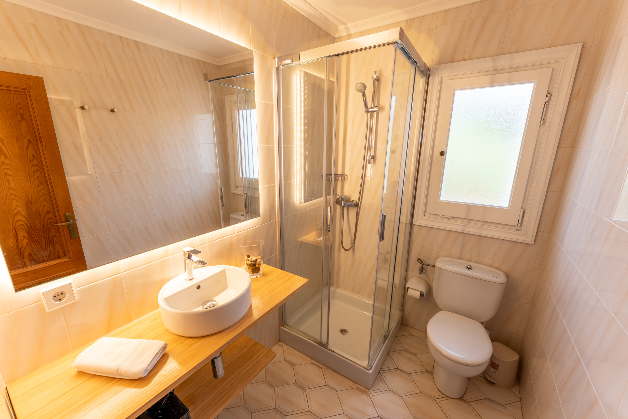 2. En la planta inferior hay un dormitorio doble y un dormitorio con dos camas individuales y un baño independiente (bañera y ducha independientes) compartido entre los dos dormitorios.