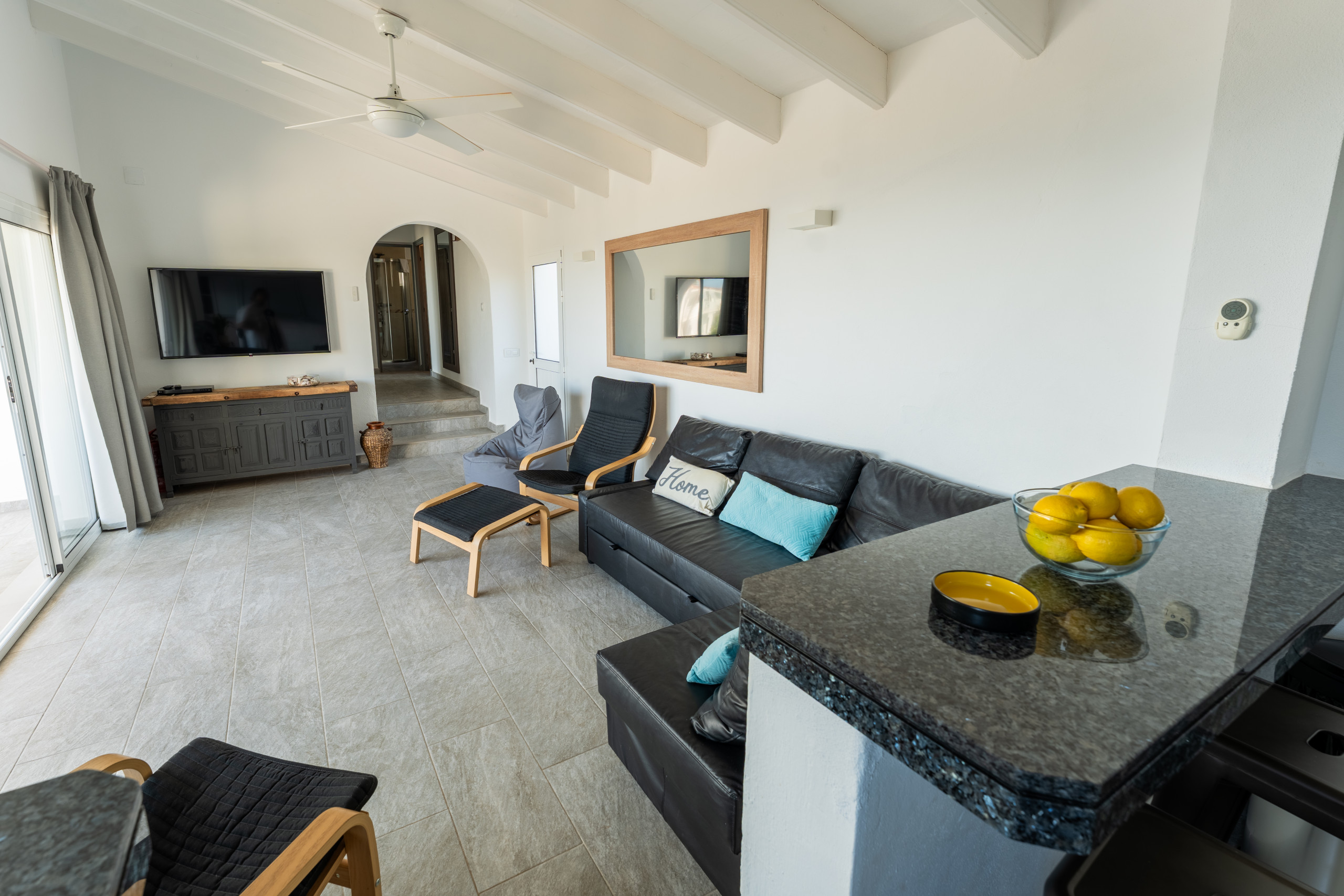 El acceso a la piscina es desde la zona del salón.