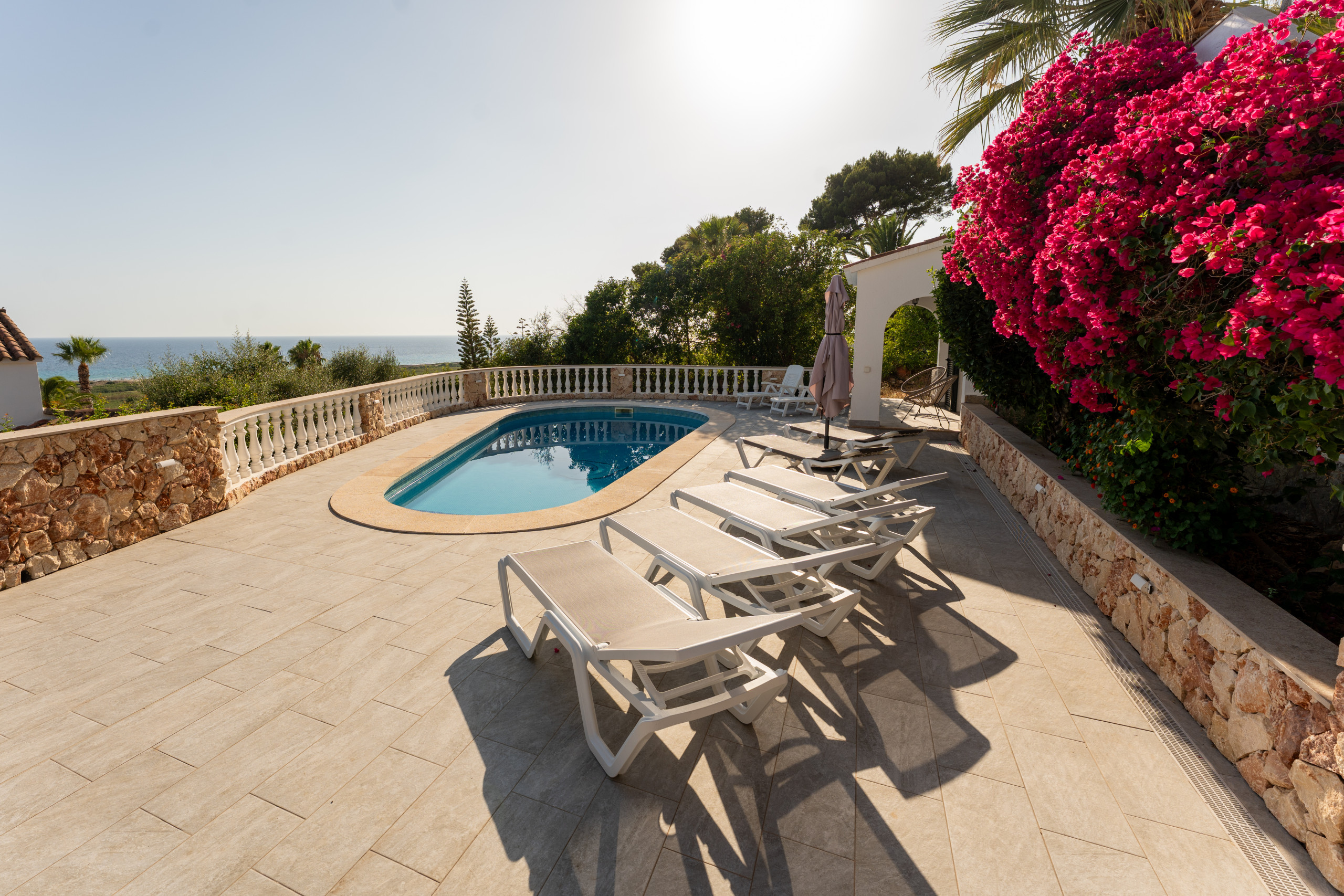 La propiedad dispone de una piscina privada, perfecta para refrescarse durante los días calurosos de verano. La amplia terraza ofrece un espacio exterior increíble para disfrutar de atardeceres inolvidable con vistas al mar.