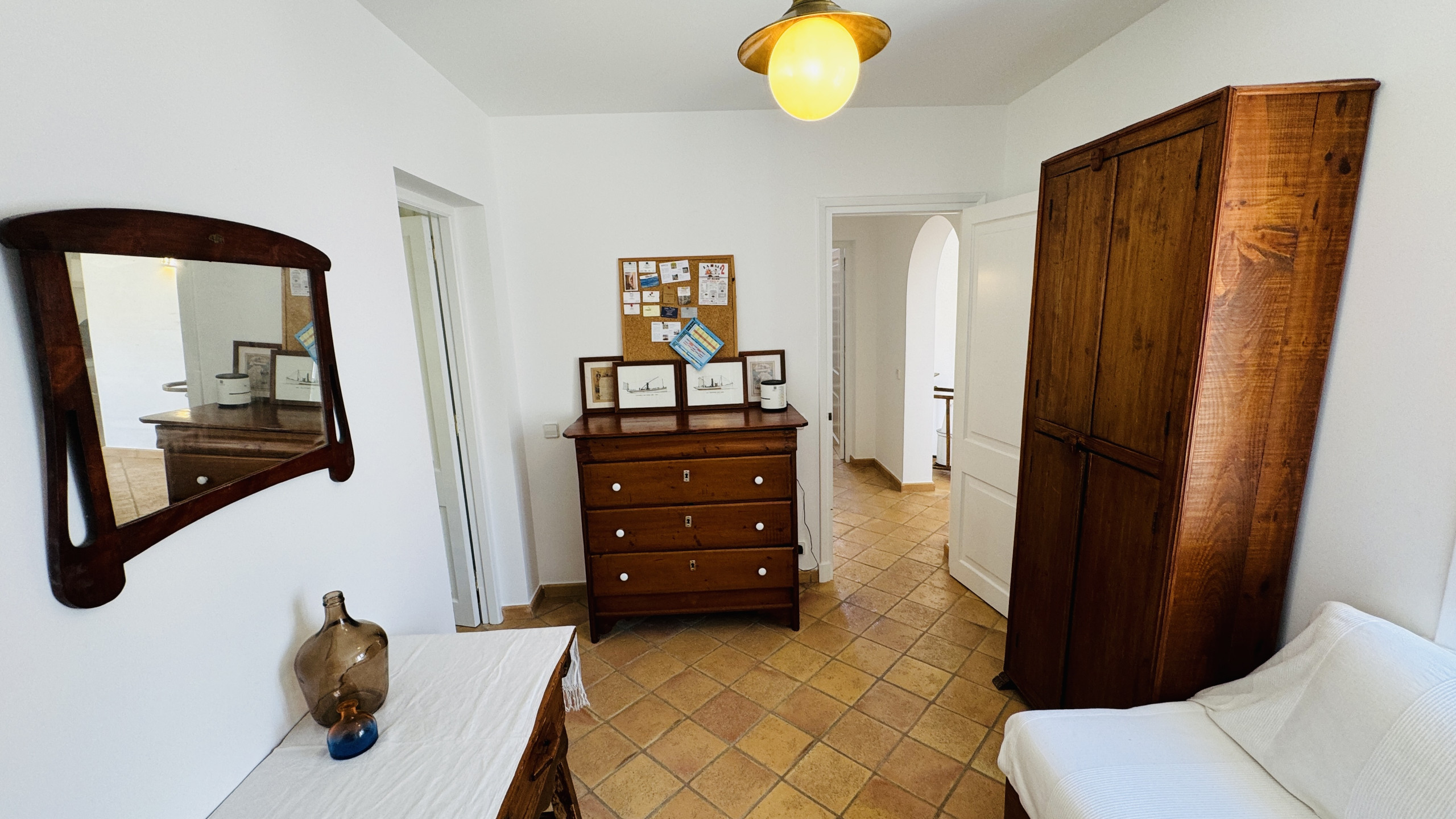 Strategically located, the house is close to the sandy beach of Binissafúller (3 km away), 4 km from the village of Sant Lluis, and just 3 km from a supermarket. Mahón airport is 11 km away, and Son Parc golf course is 32 km away. It is an ideal place for children, with multiple nearby attractions such as Splash Sur Menorca.