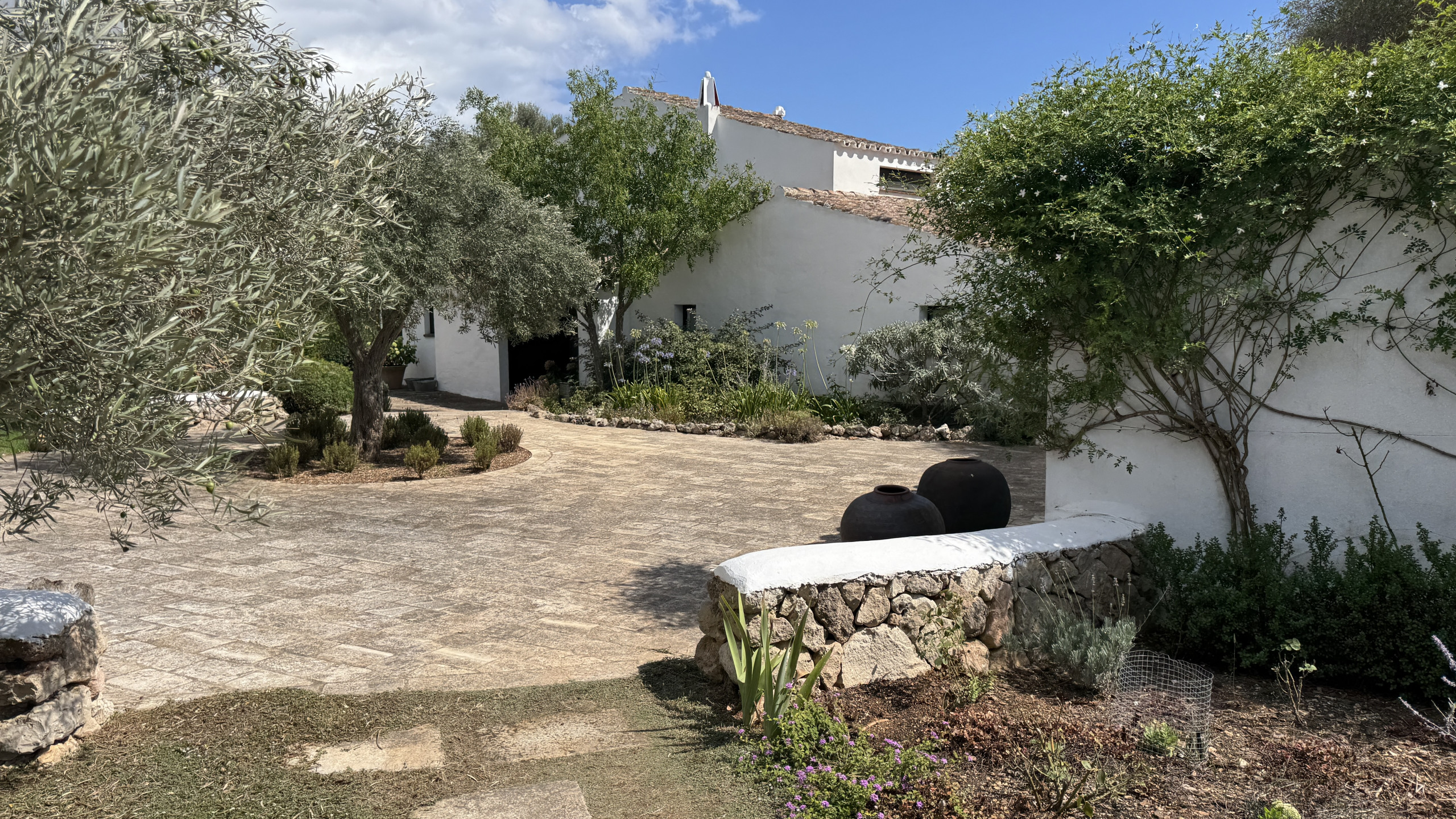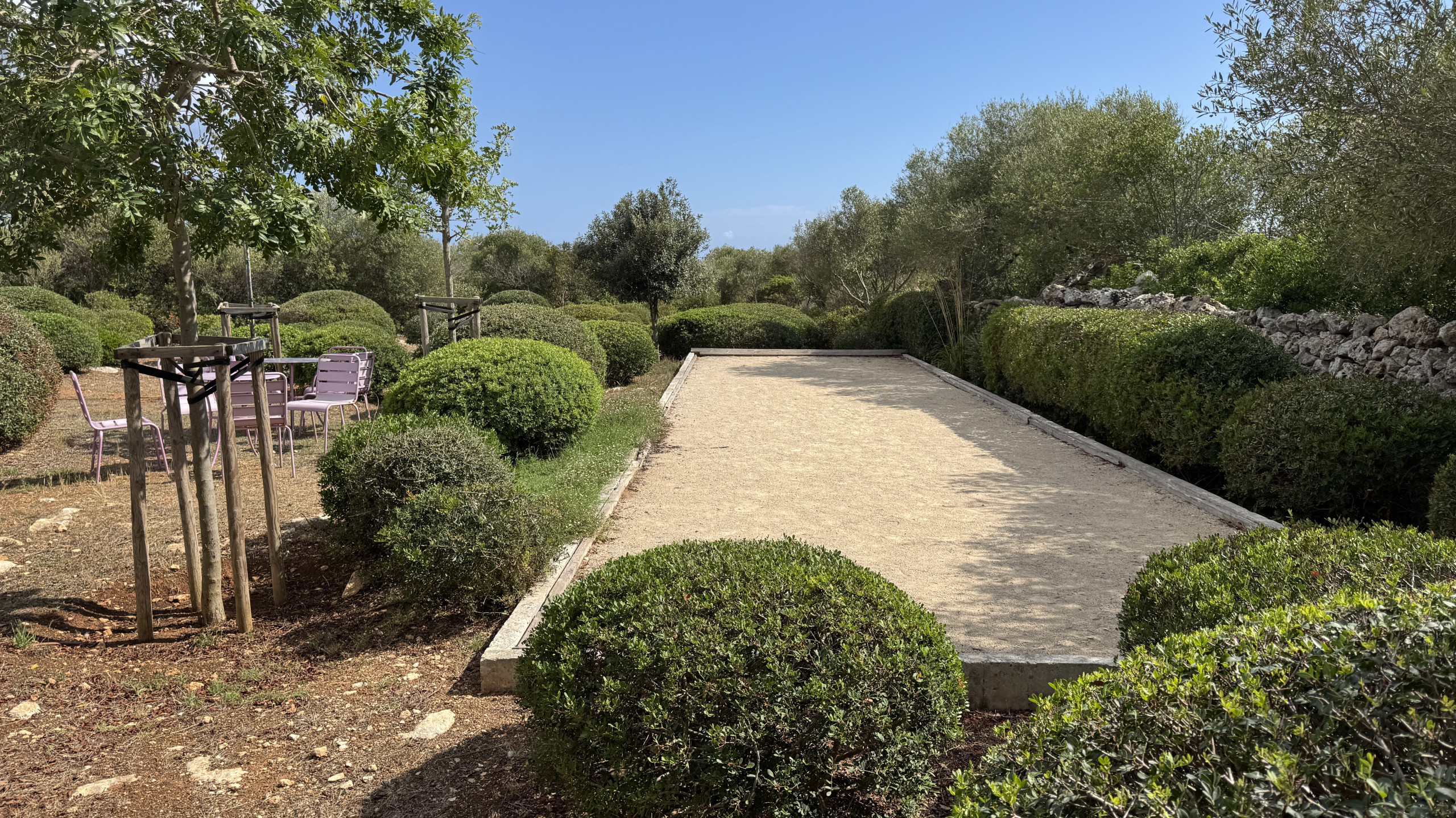 The property has a large plot of land with many gardens and areas to relax in the sun or shade. The swimming pool, which measures 18m x 4m, is surrounded by terrace flooring, and enjoys beautiful sea views through the countryside. Near the pool there is a petanque court with a table and chairs, and a lawn garden. The main porch is connected to the living room and kitchen, and is furnished with large sofas and a wide table with chairs for dining al fresco. Additionally, each annex has a small furnished porch also with a small table and chairs.