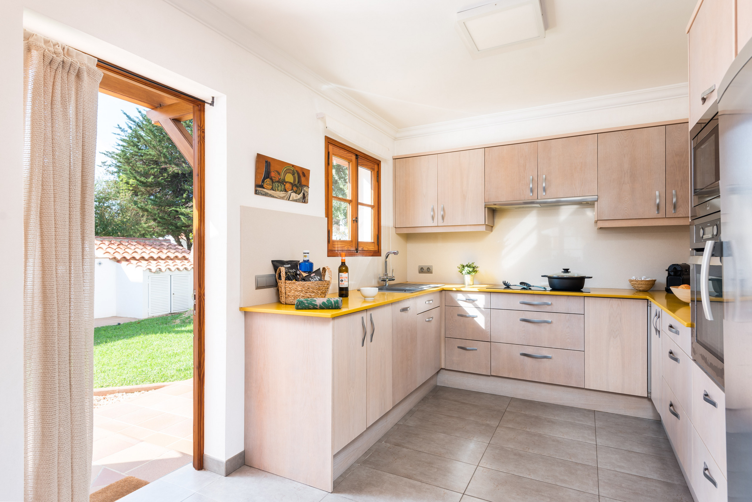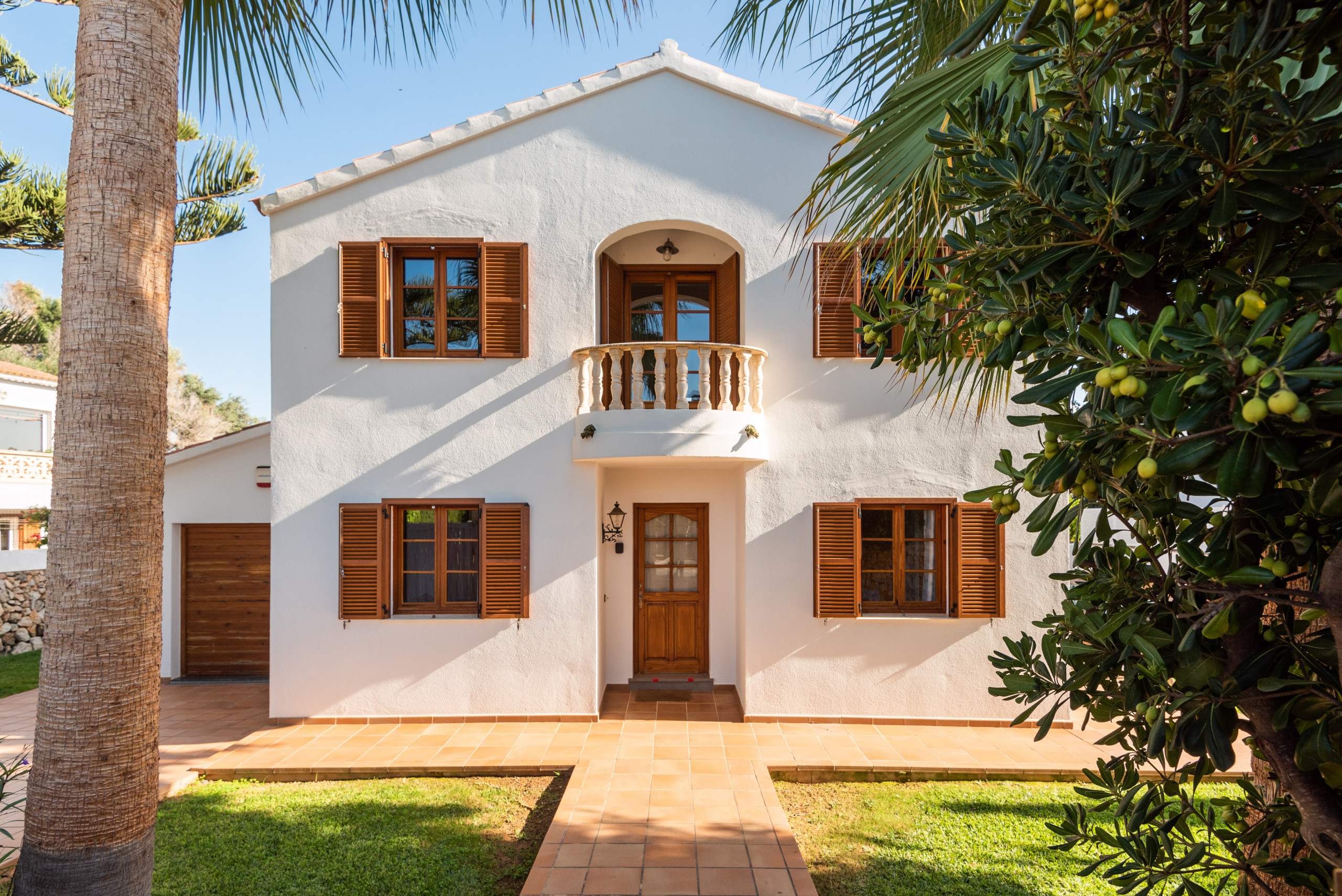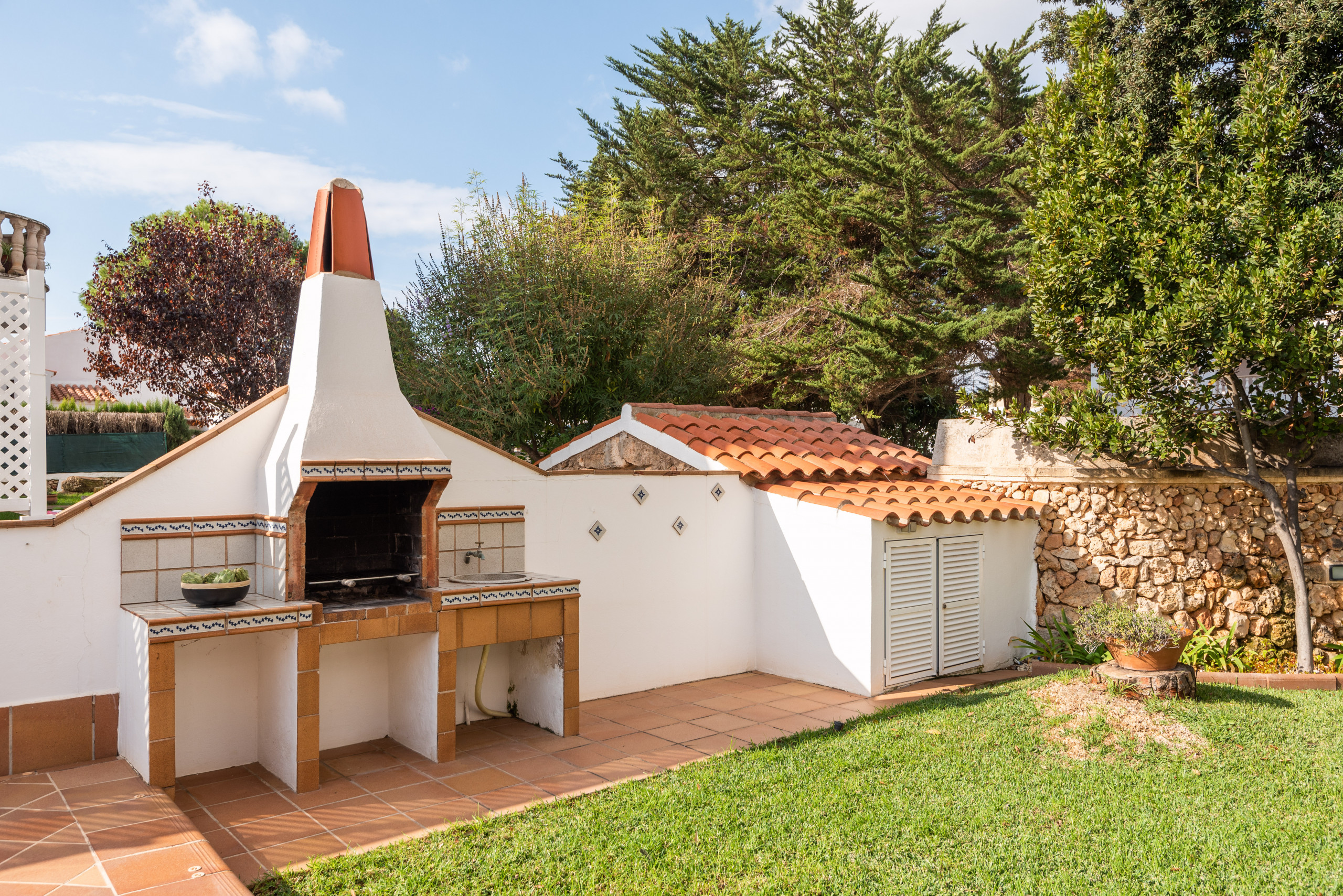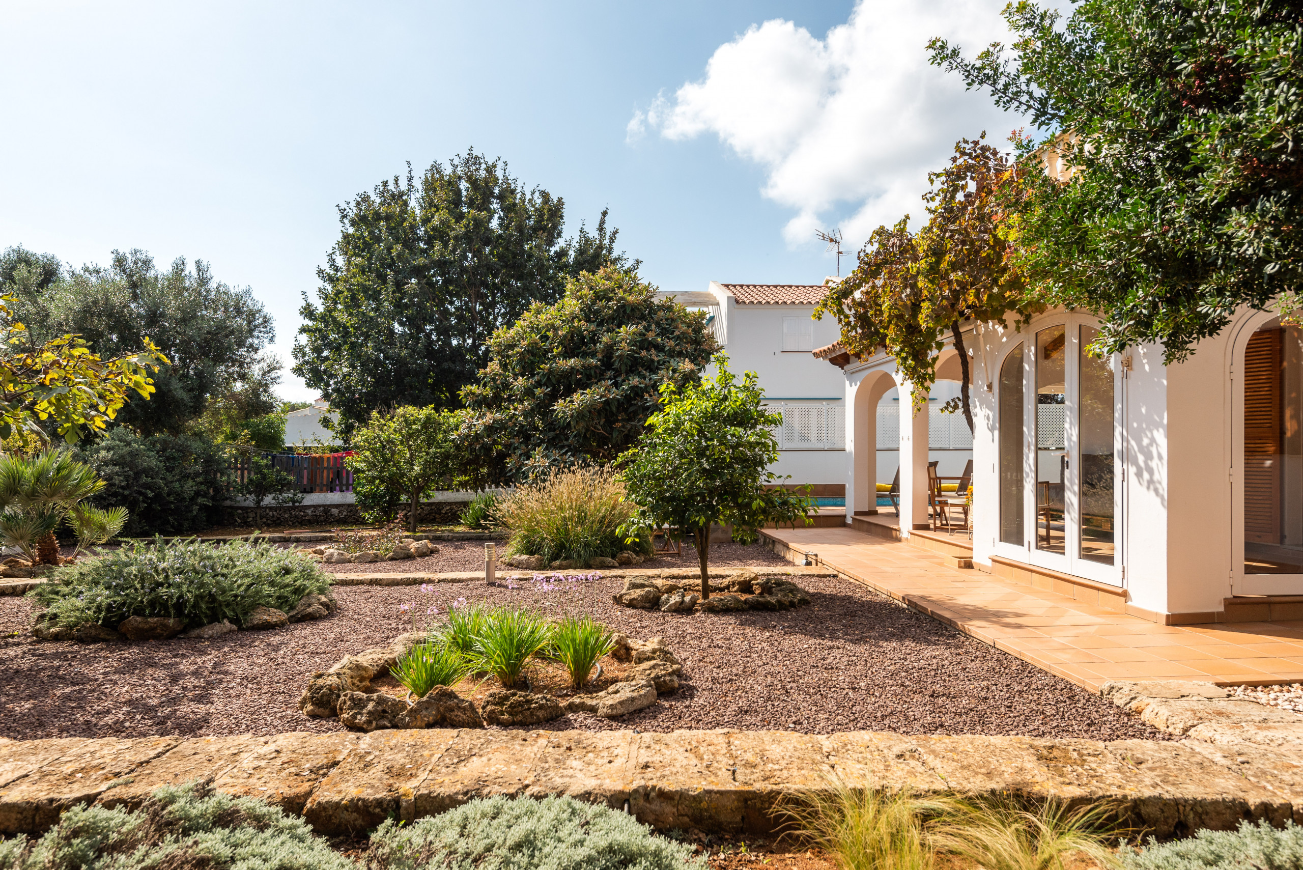Elena, is a special accommodation in Mauter Villas. Elena, enjoy a large plot, where the vegetation, fruit trees, typical Menorca style orchard, make you enjoy nature in your own villa. It has a private pool, with child protection if desired. Pool, surrounded by deckchairs and a magnificent built-in barbecue! Inside is ideal. Very complete kitchen with nespresso coffee machine and much more, living room with new sofas from 2021 because we always think about your comfort, and from the living room and kitchen, access to a large terrace, with chillout-style furniture, to be able to enjoy the summer afternoons. Rooms for 7 people, with the option of adding 1 supplement at a cost per night. Located in a cul-de-sac, very quiet, just 400 meters from the sandy beach! Elena, it is a magnificent villa, where everyone who goes, wants to return!