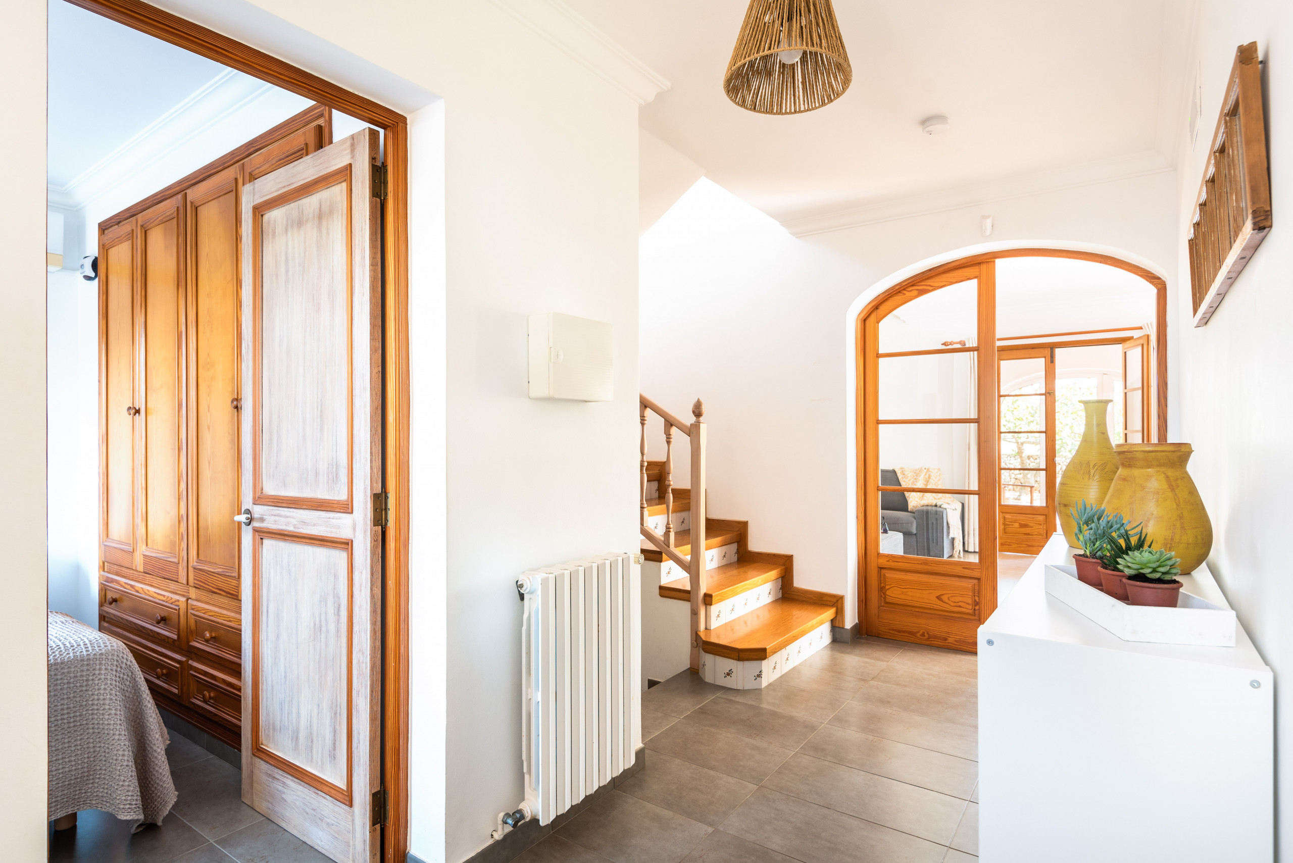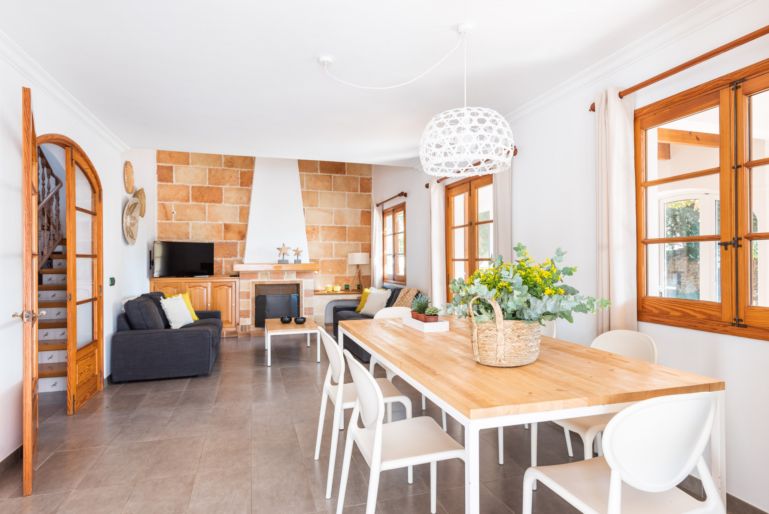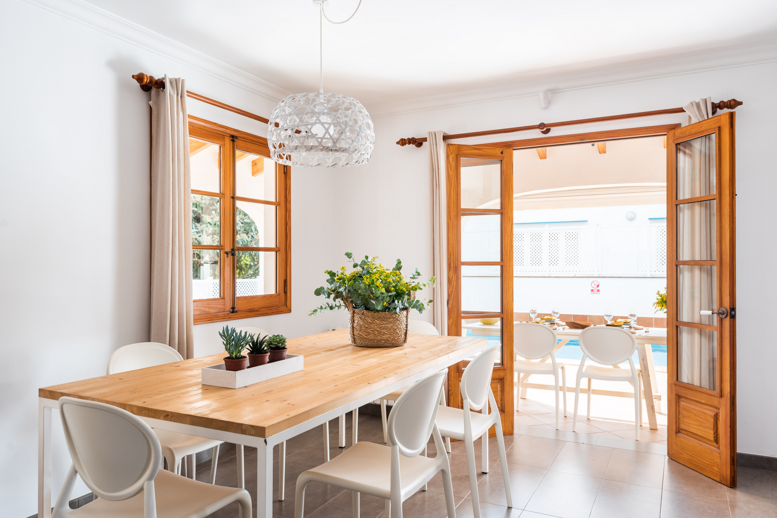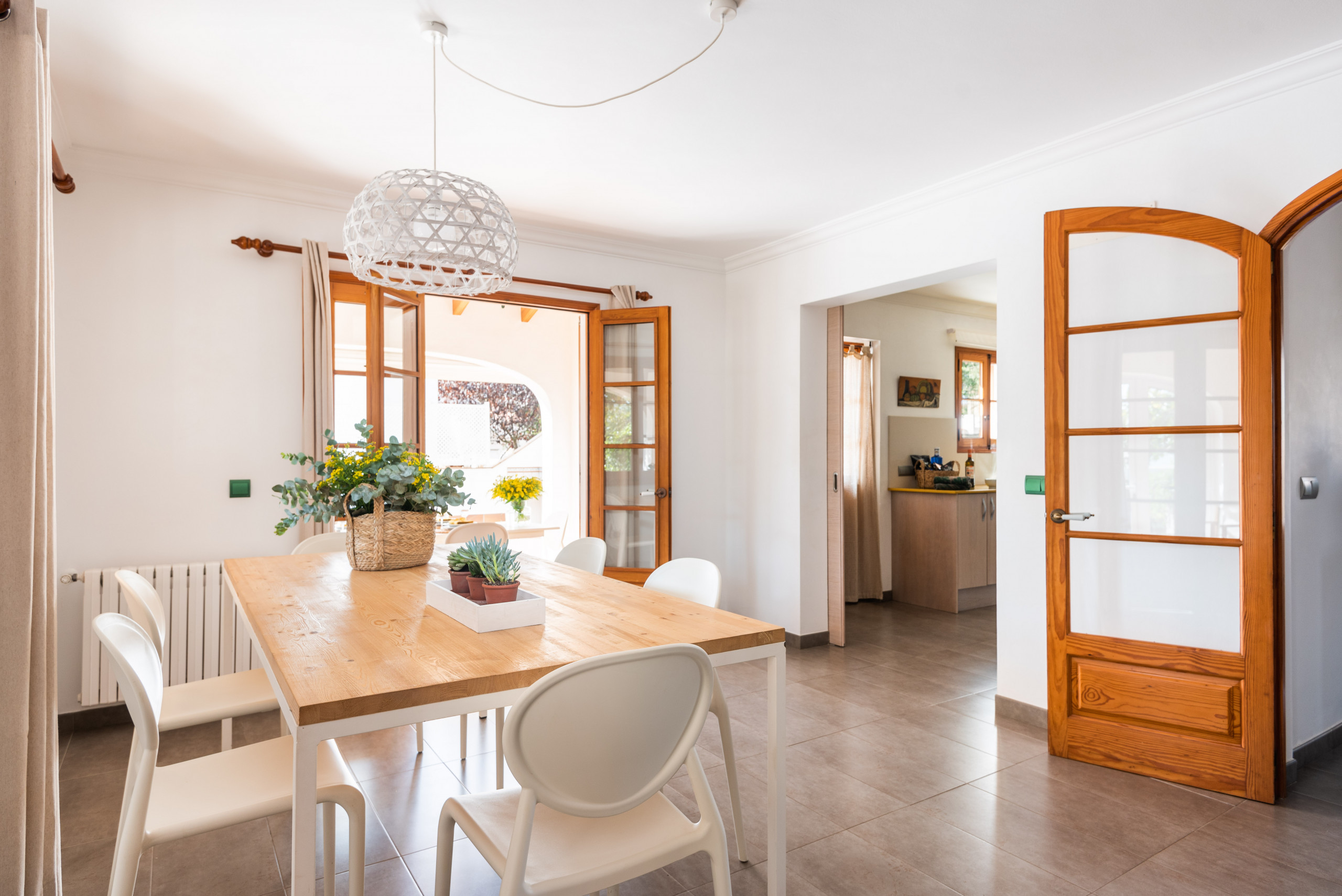 Elena, is a special accommodation in Mauter Villas. Elena, enjoy a large plot, where the vegetation, fruit trees, typical Menorca style orchard, make you enjoy nature in your own villa. It has a private pool, with child protection if desired. Pool, surrounded by deckchairs and a magnificent built-in barbecue! Inside is ideal. Very complete kitchen with nespresso coffee machine and much more, living room with new sofas from 2021 because we always think about your comfort, and from the living room and kitchen, access to a large terrace, with chillout-style furniture, to be able to enjoy the summer afternoons. Rooms for 7 people, with the option of adding 1 supplement at a cost per night. Located in a cul-de-sac, very quiet, just 400 meters from the sandy beach! Elena, it is a magnificent villa, where everyone who goes, wants to return!