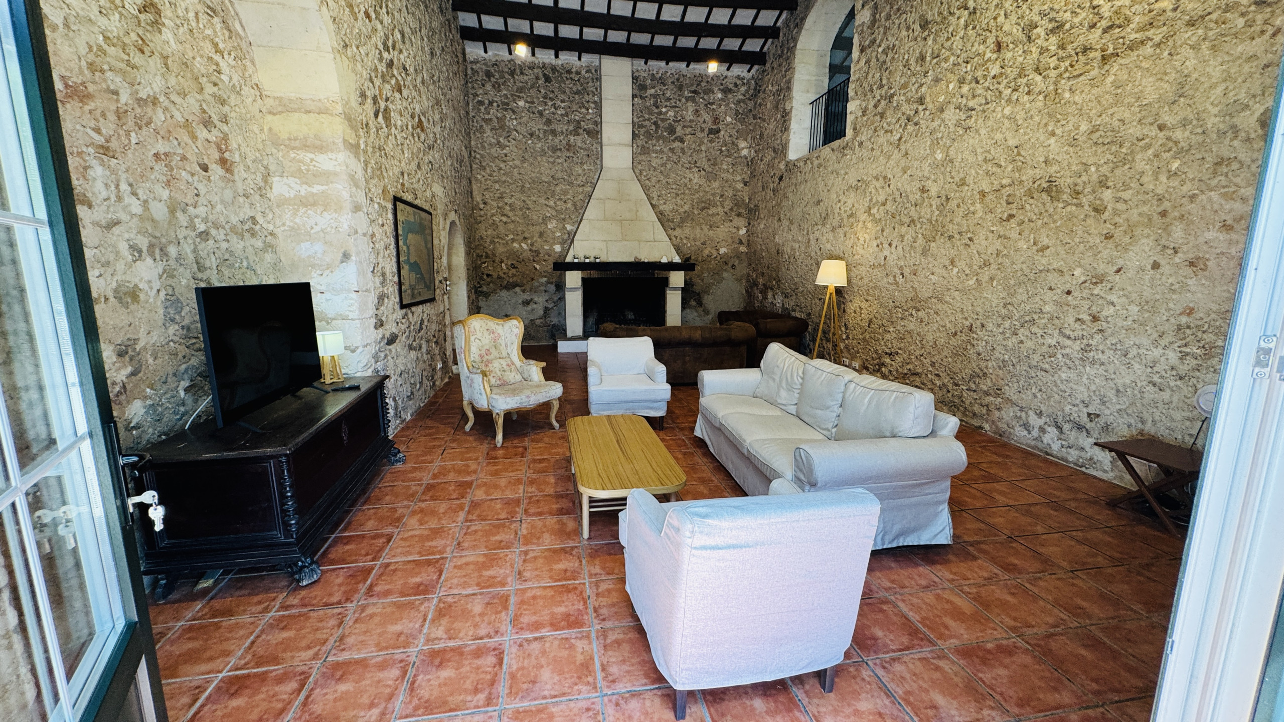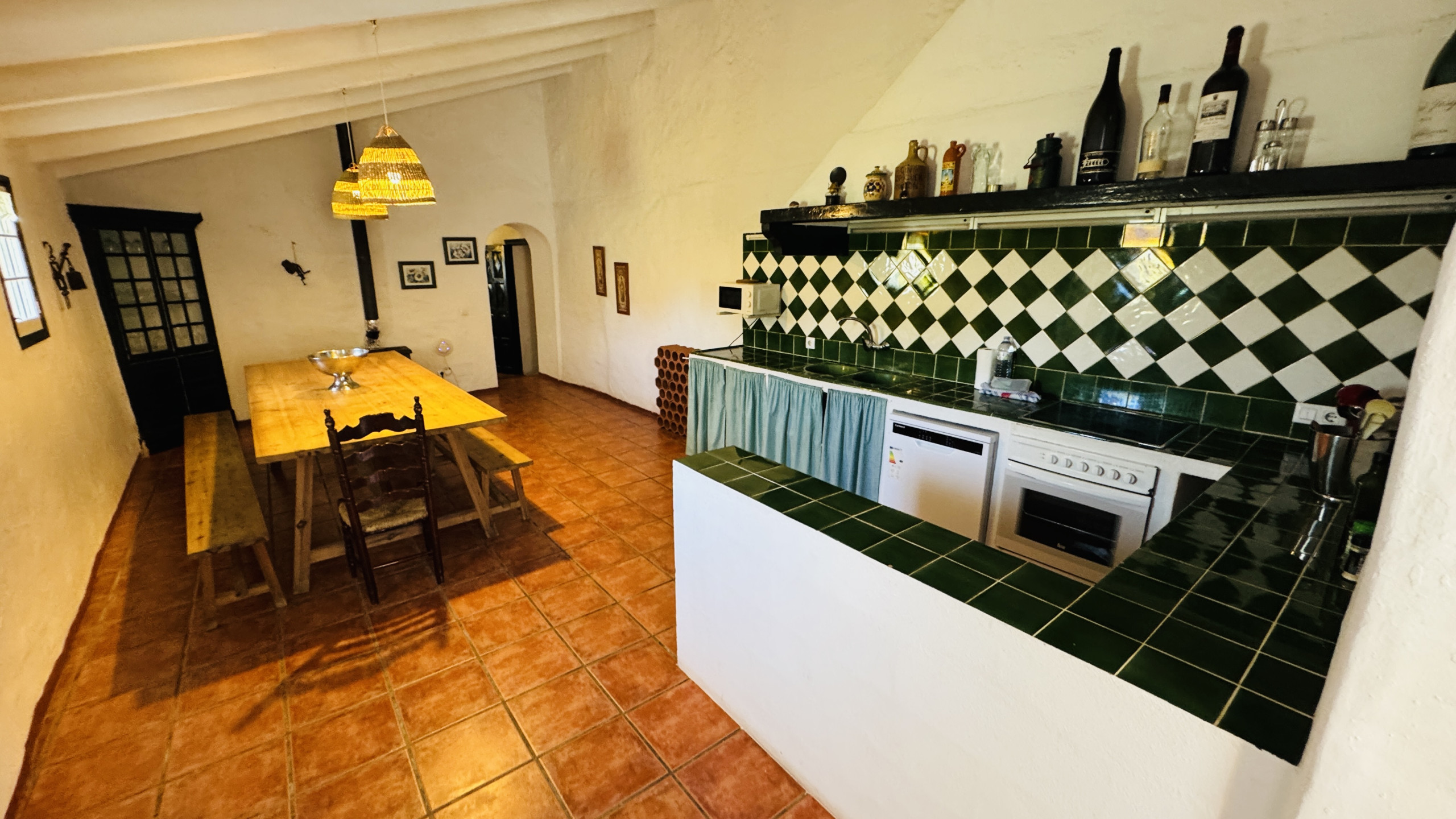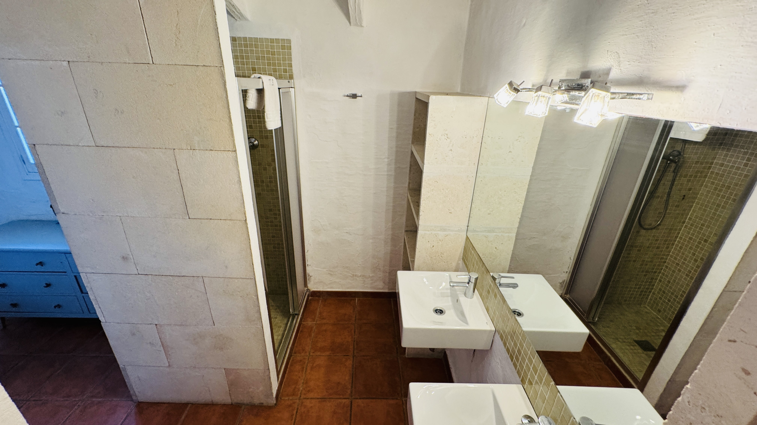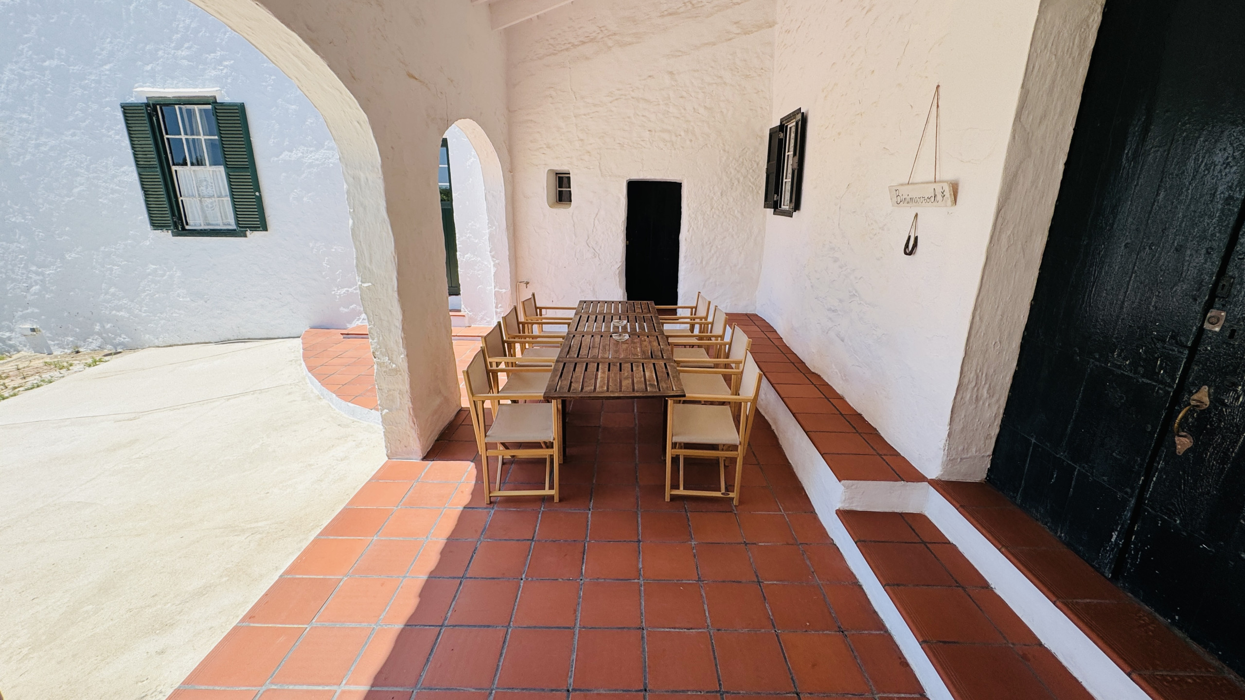 Distribution : spacieux salon principal (avec une hauteur de 5m et des murs en pierre) avec accès direct à l'extérieur, large salle à manger, grande cuisine typique de Minorque avec une « table de type paysan », 2 chambres doubles avec douche en-suite, 2 chambres matrimoniales, 1 salle de bain complète et 1 salle de bain avec douche.