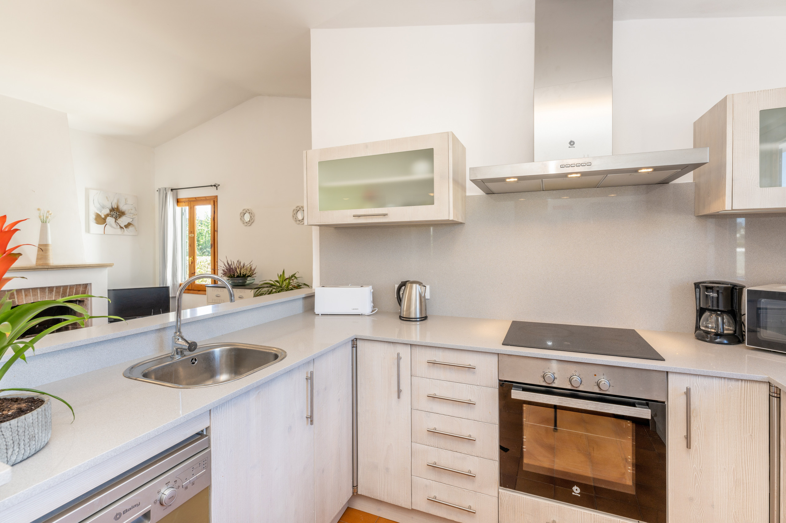 La cuisine américaine, à vitrocéramique, est équipée avec réfrigérateur, micro-ondes, four, congélateur, lave-vaisselle, vaisselle/couverts, ustensiles/cuisine, cafetière, grille pain, bouilloire et presse-agrumes.