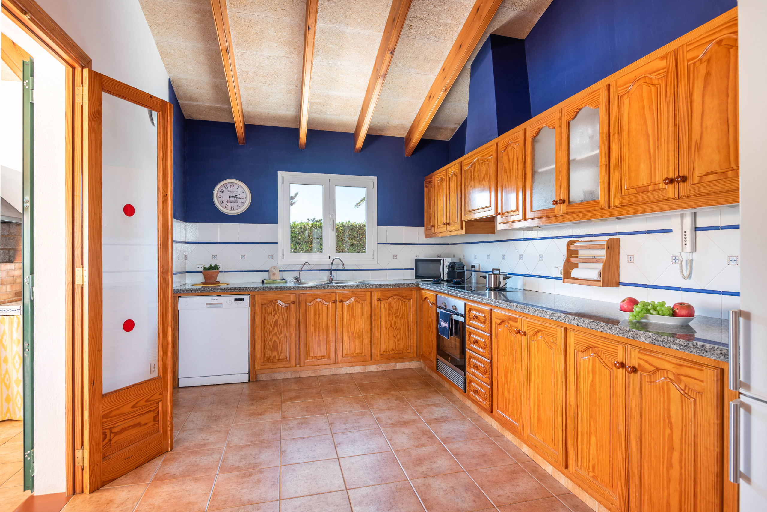 La cuisine indépendante, à vitrocéramique, est équipée avec réfrigérateur, micro-ondes, four, congélateur, lave-vaisselle, vaisselle/couverts, ustensiles/cuisine, cafetière, grille pain, bouilloire et presse-agrumes.