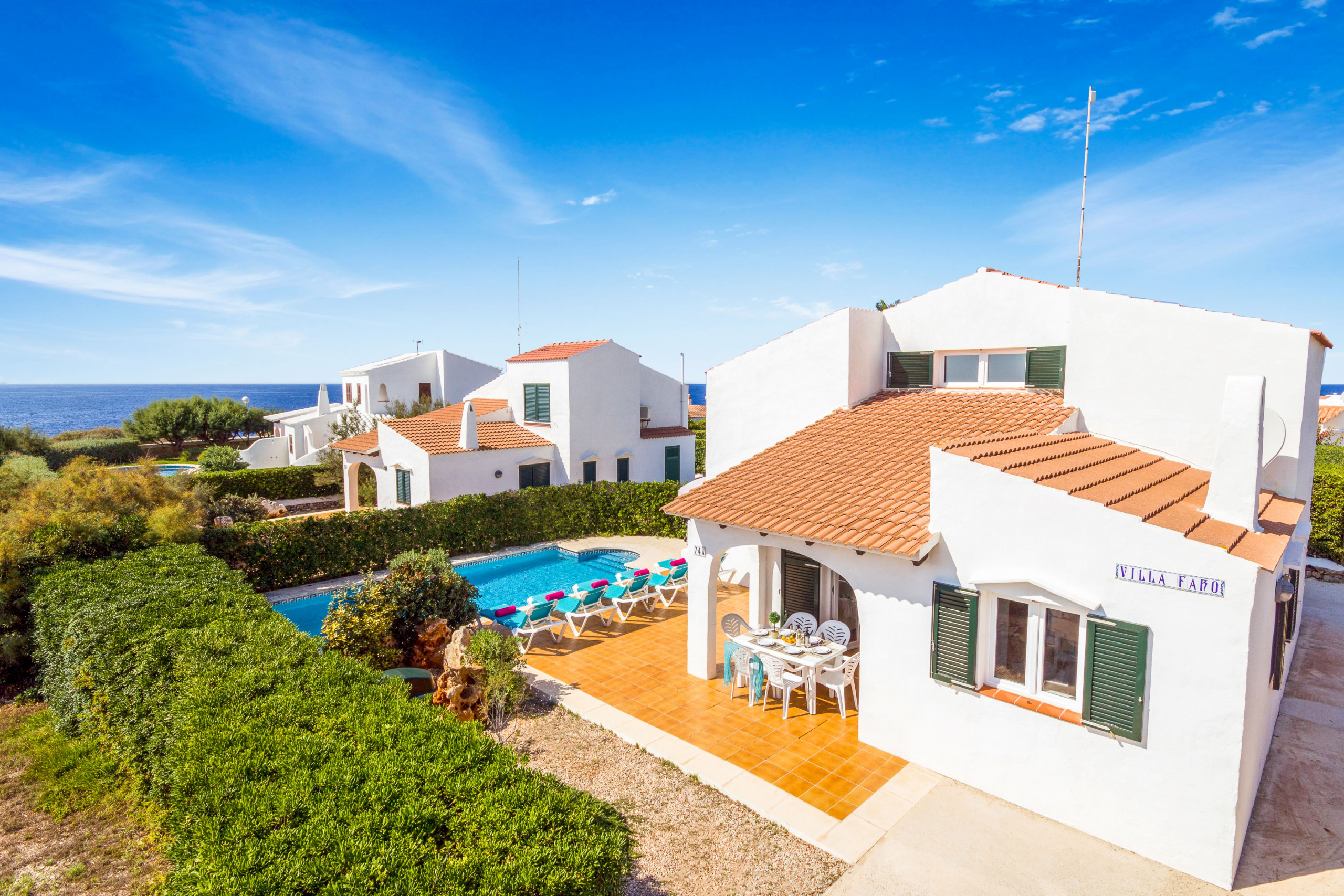 La villa est située dans un endroit superbe et calme, à deux pas du port de plaisance animé de Calan Bosch, avec ses nombreux bars et restaurants et ses deux plages de sable blanc.