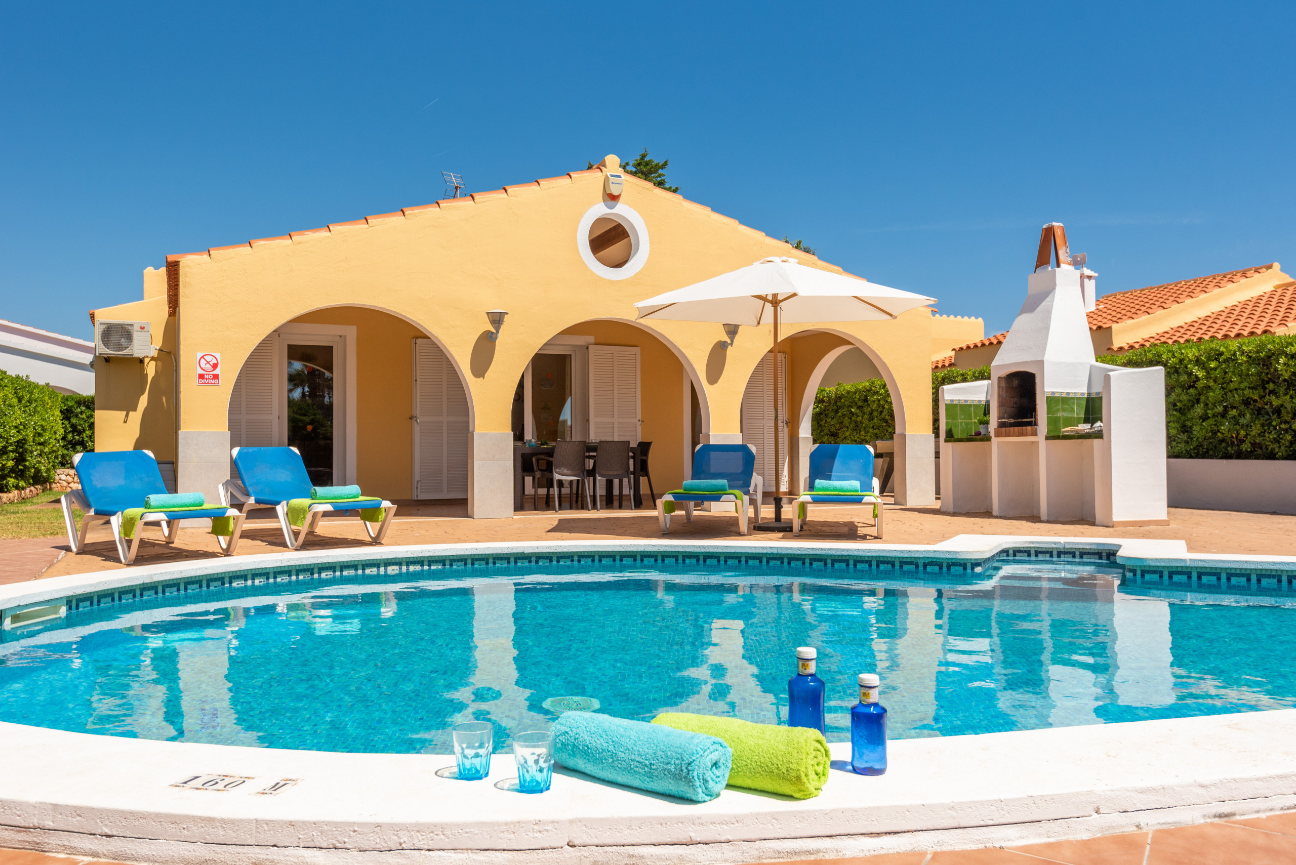 La villa est située dans un endroit superbe et calme, à deux pas du port de plaisance animé de Calan Bosch, avec ses nombreux bars et restaurants et ses deux plages de sable blanc.