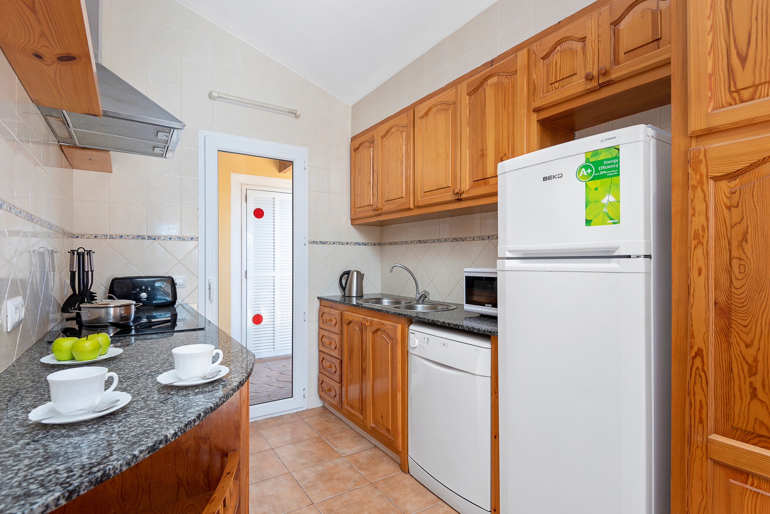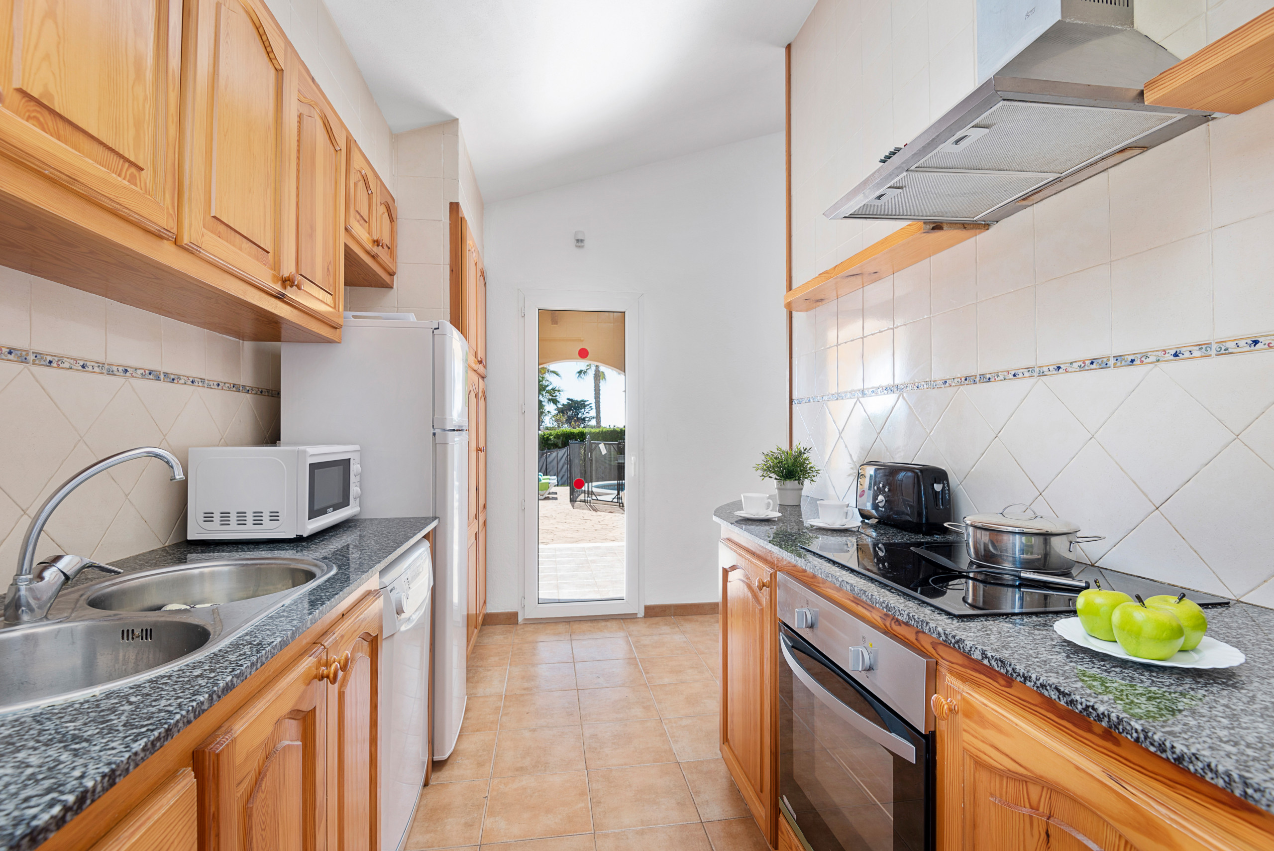 La cuisine indépendante, à vitrocéramique, est équipée avec réfrigérateur, micro-ondes, four, congélateur, lave-vaisselle, vaisselle/couverts, ustensiles/cuisine, cafetière, grille pain, bouilloire et presse-agrumes.
